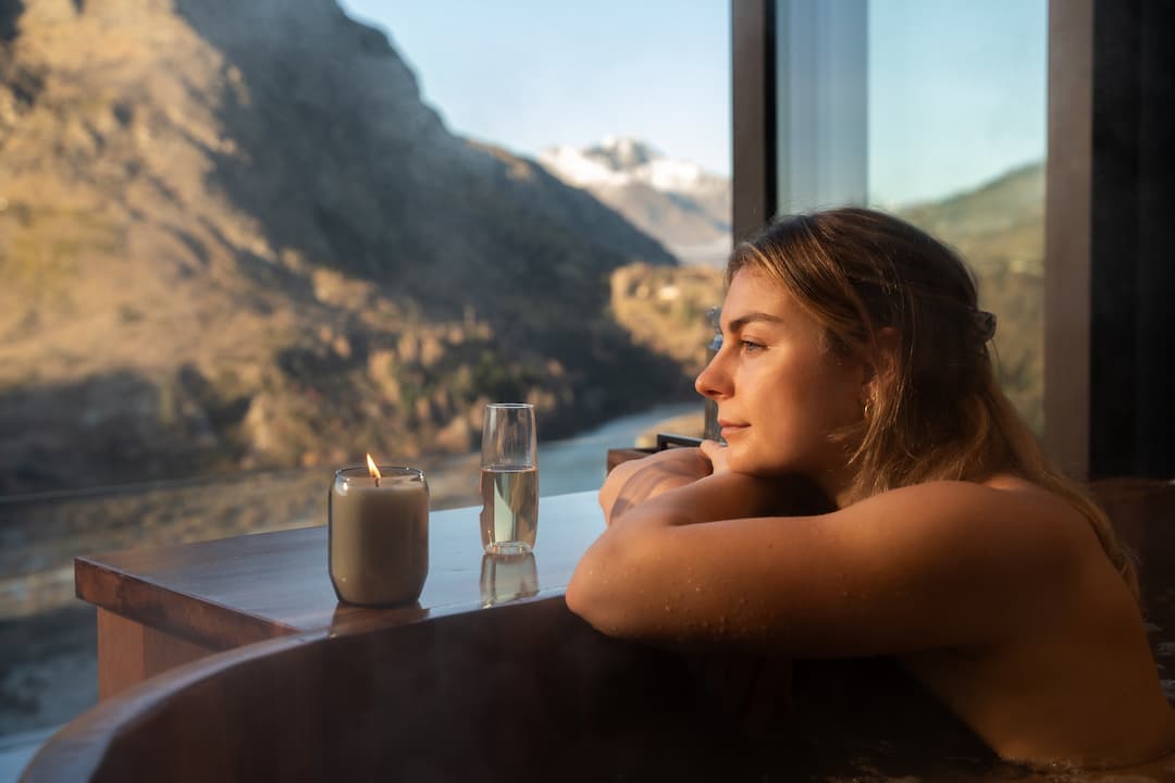 Designed for couples or individuals seeking the very best in relaxation, our Oval tubs offer 60 minutes of uninterrupted tranquillity. Each cedar tub is set on a secluded deck overlooking the Shotover River and surrounding alpine peaks – the perfect backdrop for a deeply restorative soak.